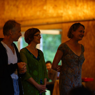 Le 4 aout, les artistes, amis et public étaient au rendez-vous pour fêter l'inauguration du studio de création. Une belle journée, malgré la seule pluie du mois d"aout! Nous avons commencé avec des ateliers d'initiation à l'acrobatie avec Mathieu, au fil avec Océane, aux portés avec Sébastien at au hip-hop avec Mathias, suivis par une trentaine d'enfants, adolescents, adultes. Des petits discours quand même pour présenter le projet, remercier tous ceux qui nous ont aidé, parler des relations avec le territoire, suivis d'un mini récital de guitare classique, d'une performance dansée et acrobatiques et pour finir d'un petit bal pieds nus, façon bal moderne, entrainant toutes les générations...